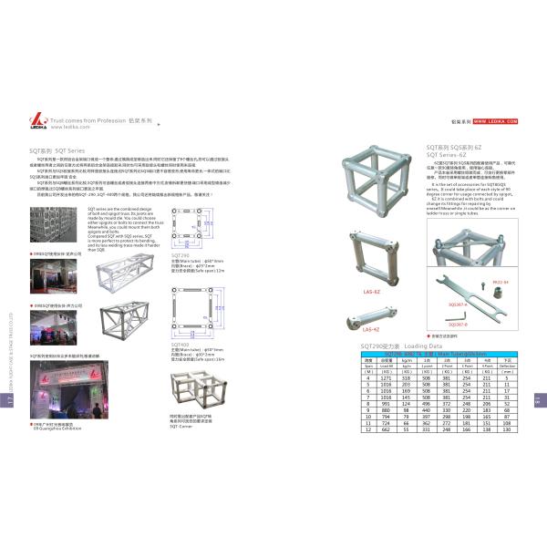 SQT series are the combined design of bolt and spogot truss.Its joints are made by mould die.You could choose either spigots or bolts to connect the truss . Meanwhile,you could mount them both spigots and bolts. Compared SQT and SQS series ,SQT is more perfect to protect its bending, and its less welding trace made it harder than SQB.